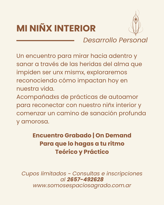 A través de ejercicios terapéuticos, visualizaciones y prácticas conscientes, vas a reconectar con tu niñx interior, abrazar tu historia y abrirte a una versión más auténtica y compasiva de vos mismx.