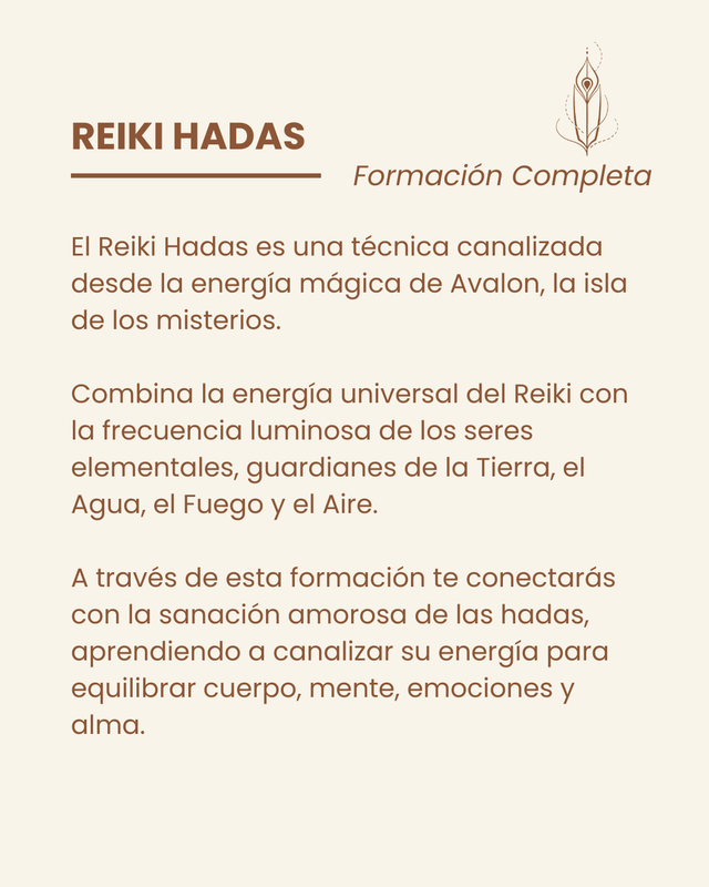 El Reiki Hadas es una técnica canalizada desde la frecuencia luminosa de Avalon, la isla de los misterios, donde los seres elementales, guardianes de la Tierra, el Agua, el Aire y el Fuego, habitan en perfecta armonía. Su energía nos invita a recordar nuestra esencia pura, inocente y mágica, y a sanar desde la alegría y la conexión con la naturaleza🌿