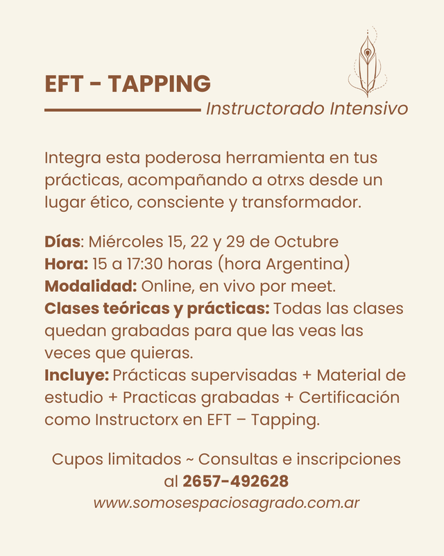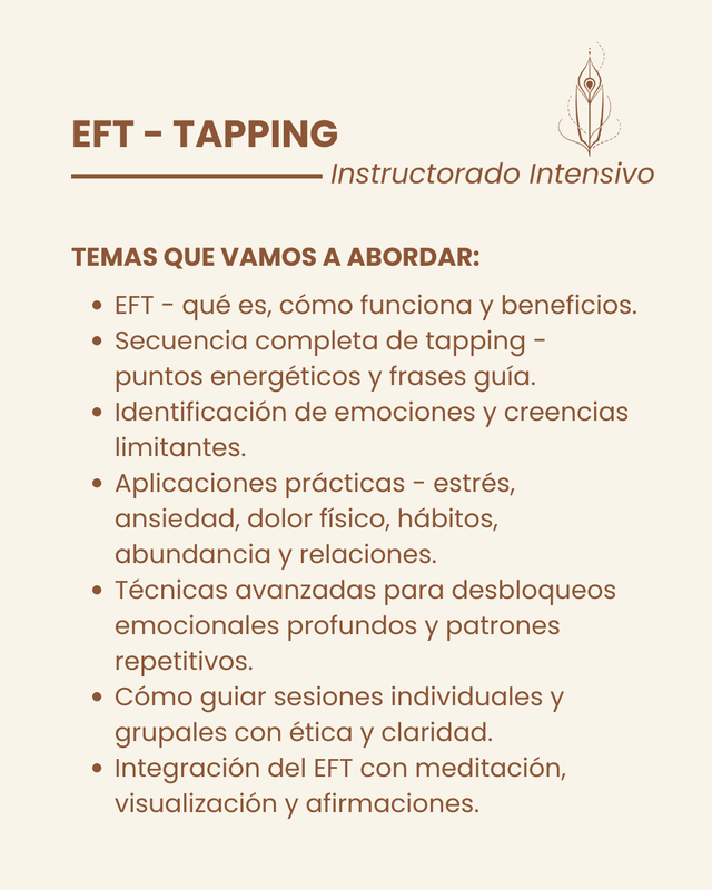 - Formarte como Instructor/a en EFT – Tapping, con prácticas supervisadas y certificación final.