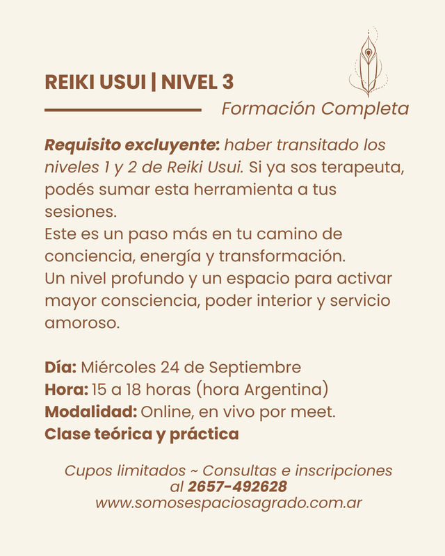 Reserva tu lugar al 2657-492628 o por nuestra web www.somosespaciosagrado.com.ar