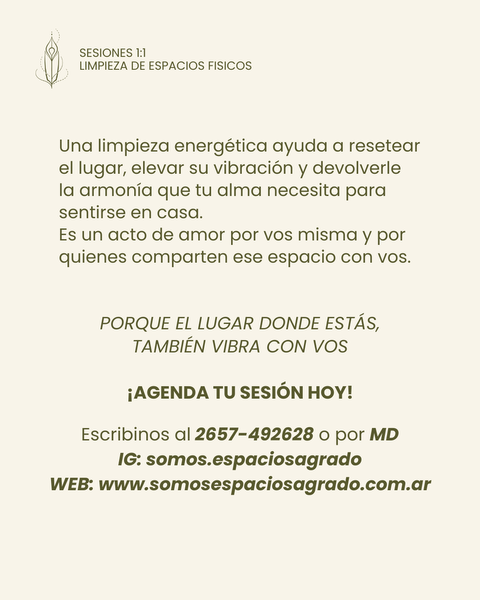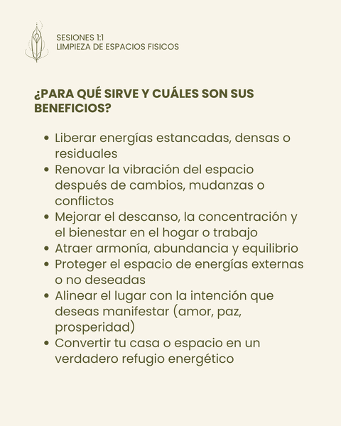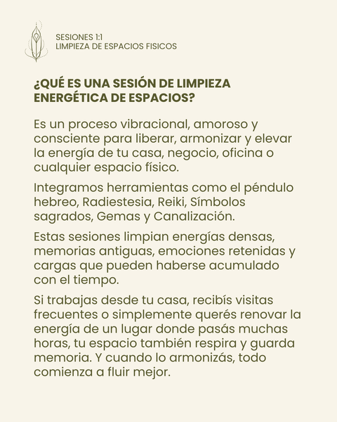Esta sesión es un ritual profundo y amoroso para renovar, limpiar y elevar la frecuencia de tu casa, negocio u oficina.