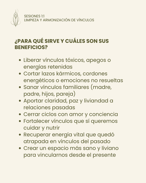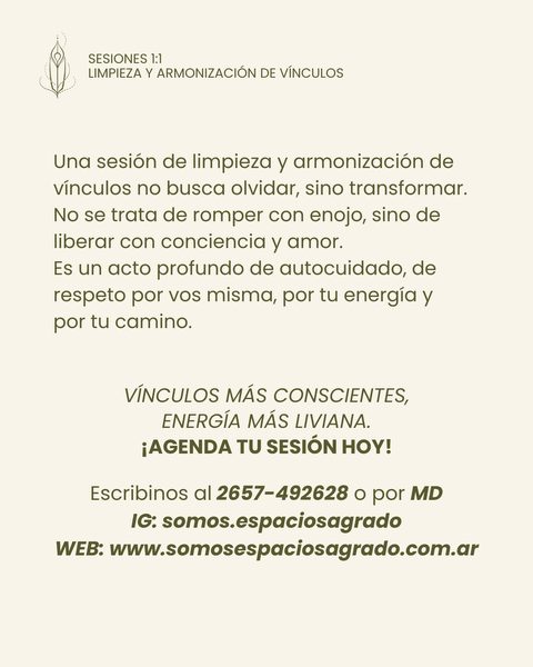 Esta sesión es un espacio amoroso para limpiar, liberar o sanar los lazos energéticos que te conectan con otras personas.